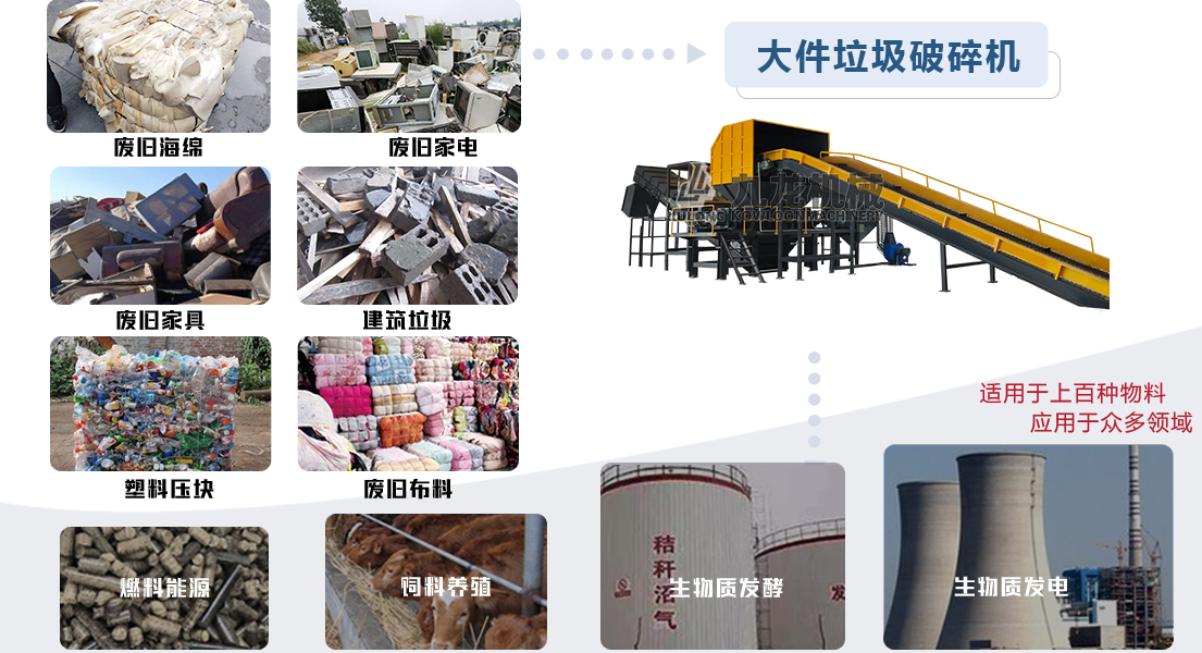 適用范圍: 廢舊床墊、沙發(fā)、廢舊家具、冰箱、家電、裝修垃圾、園林垃圾、包裝垃圾等大件生活廢棄物。